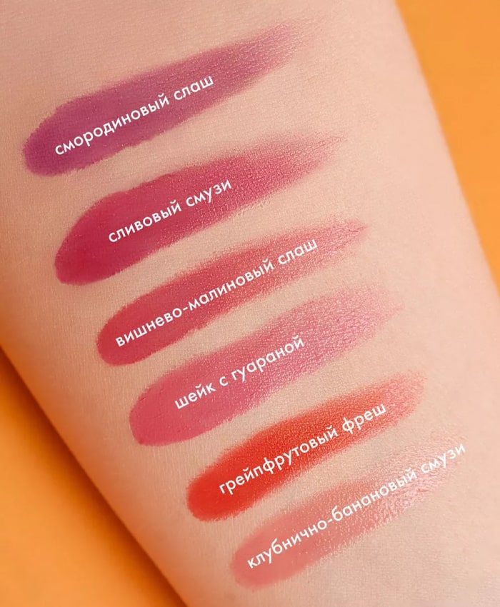 Gavalı smuzinin rahat ətri olan balzam dodaqları mümkün qədər şirəli edir: o, zərif qulluq edir, şəffaf tünd bənövşəyi kölgə və yüngül parıltı verir.