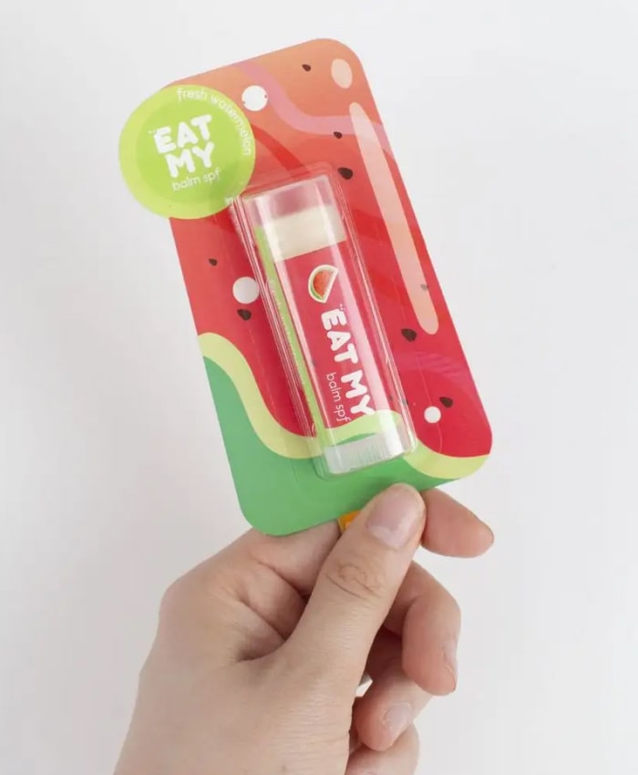 Бальзам с ароматом "Свежий арбуз" Eat My бережно увлажняет и питает губы, помогая им оставаться ухоженными и мягкими в течение дня. Всё дело — в особом рецепте: