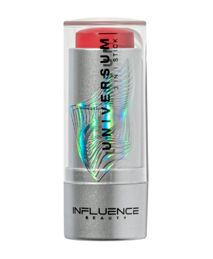 Компактная форма стика Influence Beauty Universum 3 в 1 позволяет заменить сразу несколько продуктов. Он подходит для создания монохромного макияжа, выступая в роли помады, румян и теней.