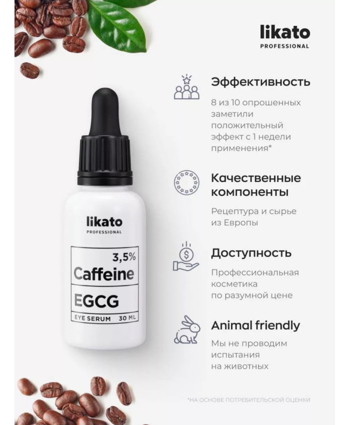 Likato Professional Caffeine Eye Serum 3,5% + EGCG şişkinliklə mübarizə aparır və göz altındakı qara dairələri işıqlandırır. Tonlayıcı və limfatik drenaj komponentlərinin birləşməsi görünüşə təzə və parlaq görünüş verir. Yorğunluq və stress izlərini aradan qaldırır.