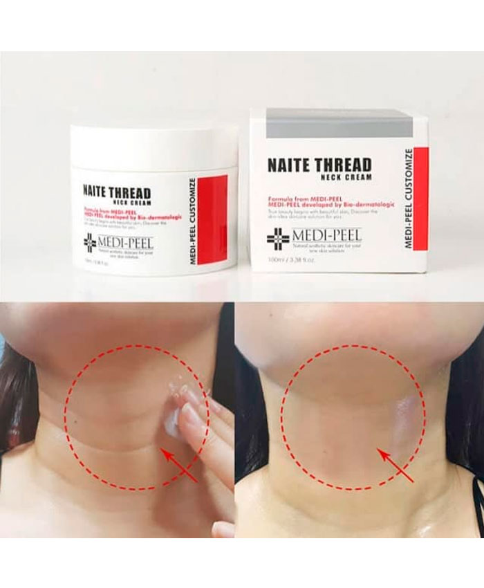 Подтягивающий крем для шеи с пептидным комплексом Medi-Peel Naite Thread Neck Cream оказывает ярко выраженное действие лифтинга, разглаживает и уменьшает глубину морщин, помогает бороться с кожными заломами и кольцами Венеры.